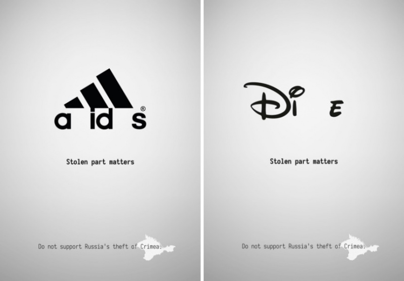 Креативники рекламного агентства TABASCO створили постери про окупацію Криму Росією. На прикладі назв всесвітньо відомих брендів агенція стверджує - вкрадена частина має значення. Так, на постерах назви лавмарок за допомогою нехитрої маніпуляції перетворюються на слова, що викликають зовсім інші емоції.
